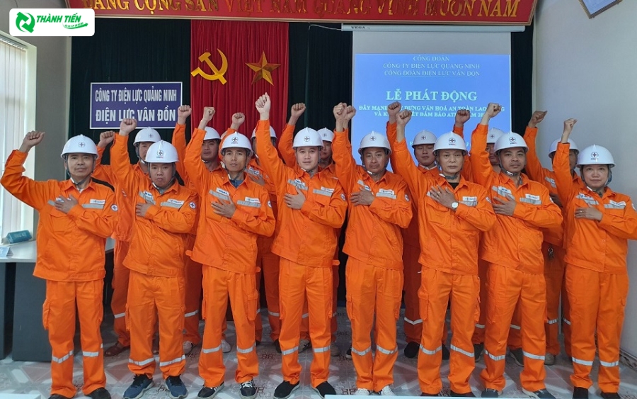 Đồng phục công nhân ngành điện lực thường có màu cam đặc trưng, không chỉ giúp nhận diện dễ dàng mà còn có khả năng chống tia UV hiệu quả. Trang phục được may từ chất liệu Cotton hoặc Kaki, đảm bảo độ co giãn, thoáng mát, mang lại sự thoải mái khi làm việc trong nhiều điều kiện môi trường khác nhau. Bên cạnh đó, thiết kế cần ưu tiên sự gọn gàng, vừa vặn nhưng vẫn đủ rộng rãi để hỗ trợ tối đa cho các thao tác vận động, giúp công nhân làm việc an toàn và hiệu quả.