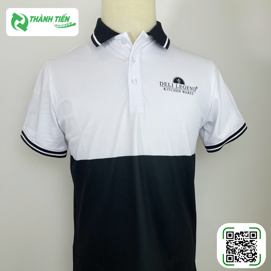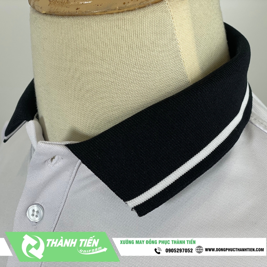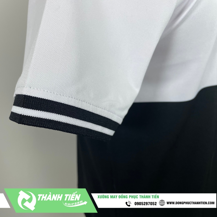 Mẫu áo polo đồng phục này thể hiện phong cách thanh lịch và chuyên nghiệp, rất thích hợp cho môi trường doanh nghiệp. Sự kết hợp giữa màu trắng và đen tạo nên điểm nhấn tinh tế, không quá phức tạp, nhưng vẫn đảm bảo tính thẩm mỹ cao, làm nổi bật hình ảnh của người mặc.