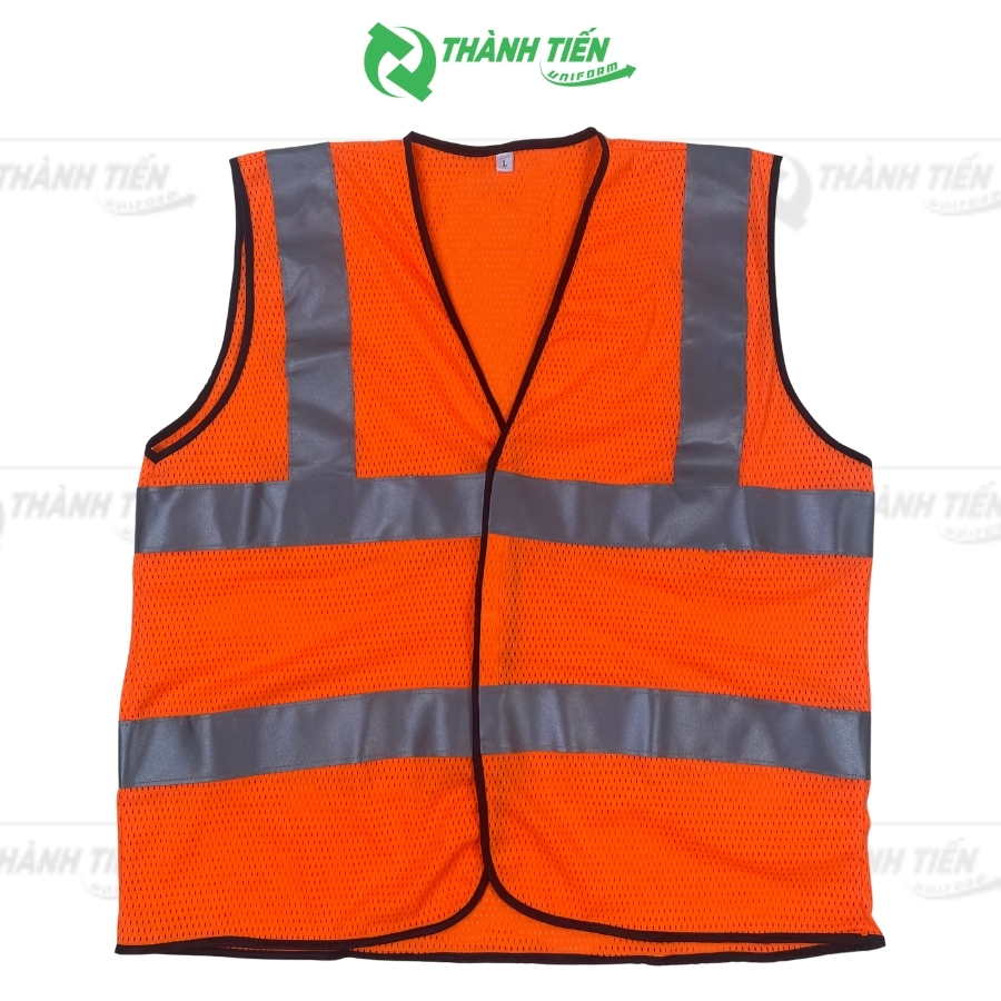 Mẫu áo gile bảo hộ màu cam bạc phản quang được sản xuất trực tiếp tại xưởng Đồng Phục Thành Tiến