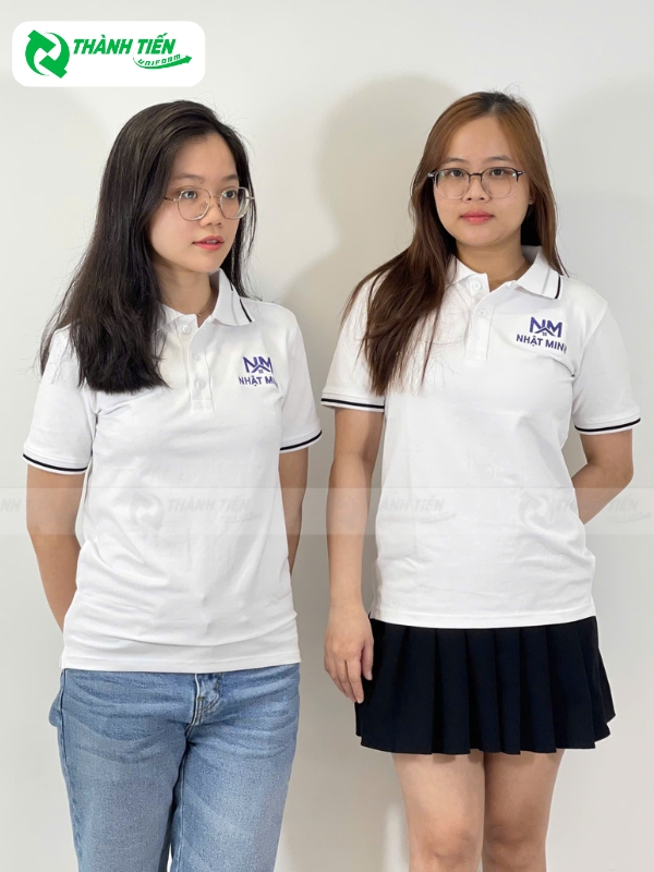Logo “Nhật Minh” được thể hiện rõ ràng, sắc nét trên ngực trái của áo bằng công nghệ in PET kết hợp với thêu tinh xảo. Điều này không chỉ giúp tăng tính nhận diện thương hiệu mà còn đảm bảo độ bền vượt trội cho sản phẩm.