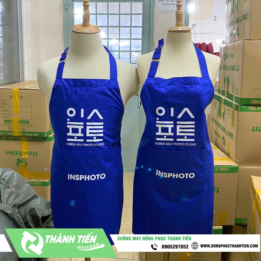 Mẫu tạp dề đồng phục dành cho thương hiệu Insphoto – Korea Self Photo Studio được thiết kế với phong cách hiện đại, năng động, phù hợp với không gian trẻ trung và sáng tạo của ngành dịch vụ chụp ảnh Hàn Quốc. Tông xanh cobalt tươi sáng, tạo cảm giác tươi mới và dễ nhận diện thương hiệu trong không gian studio. Vải dày dặn, chống bám bẩn tốt, dễ giặt và giữ form sau nhiều lần sử dụng – lý tưởng cho môi trường làm việc năng động.